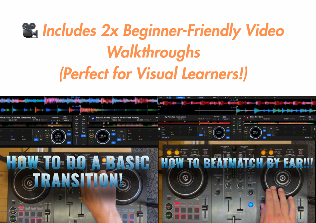 🎥 Includes 2 exclusive video walkthroughs on beatmatching and basic mixing — explained by me, so you can follow along with real guidance, not just text.